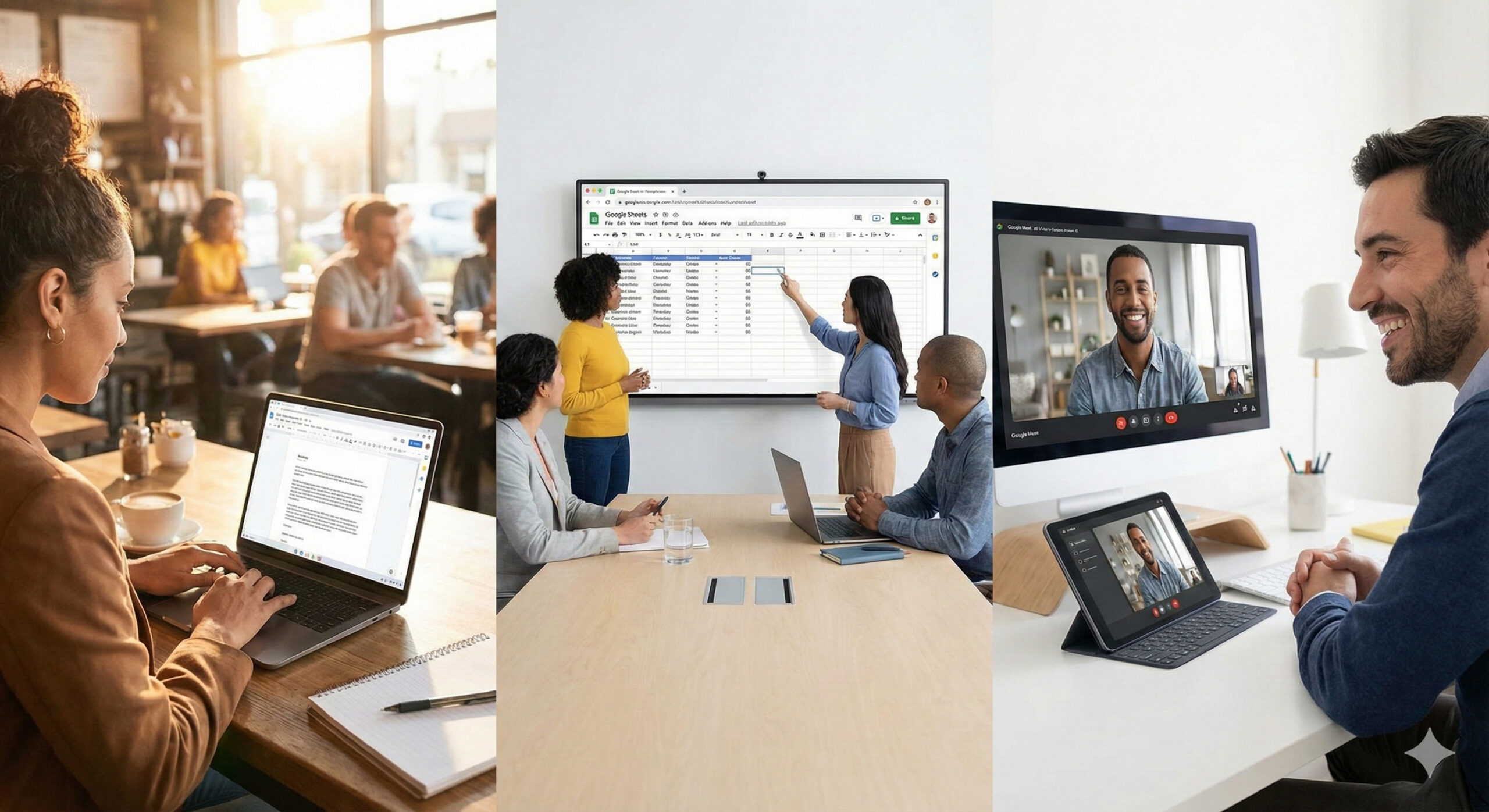 Naadloze Samenwerking: Werk in real-time samen in documenten, deel bestanden veilig via Drive en communiceer moeiteloos via Meet en Chat.